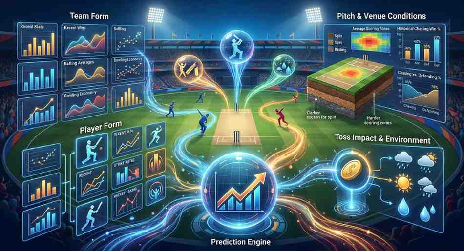 Most top prediction models and analysts rely on historical stats and real time match data. Research papers on IPL prediction using machine learning also confirm that factors like toss, venue, and player form strongly influence results.